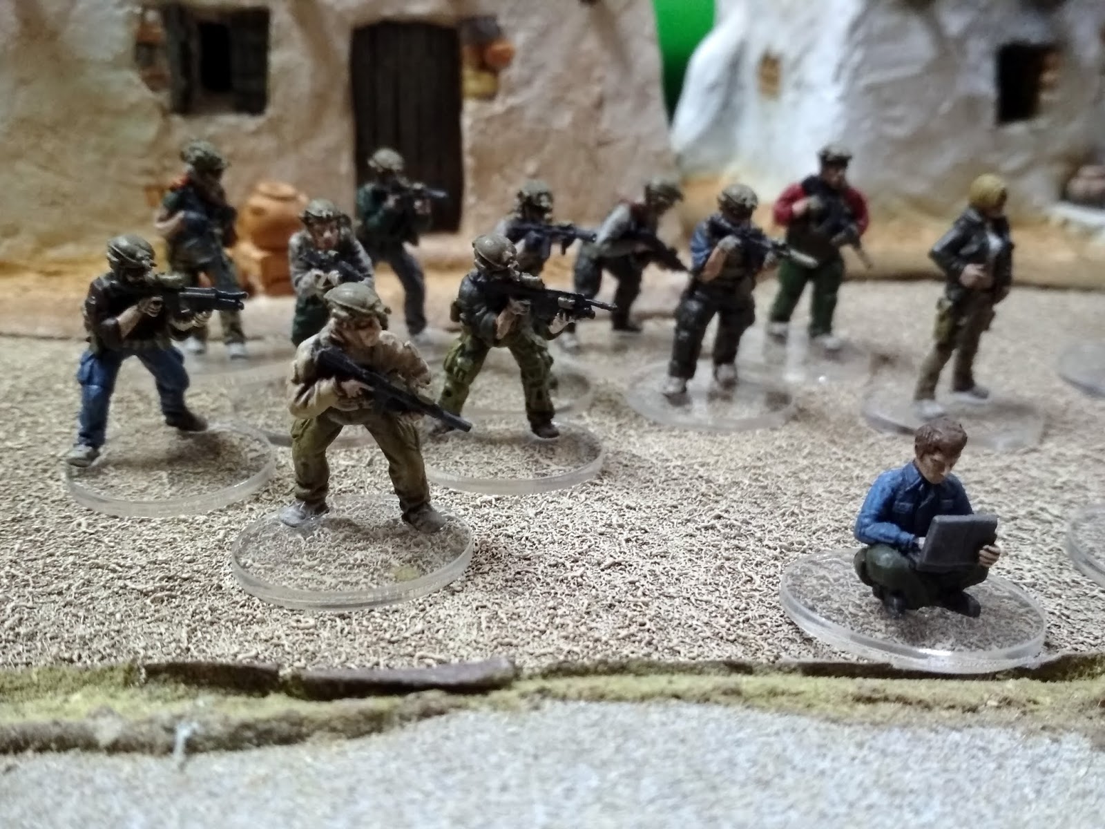 Играли миссию Последний Полет из кампании Опасный Остров. На стол расставляется два обжектива. Как только персонаж подбирает один из них, на стол выкладывается следующий. Только владея двумя обжективами можно взаимодействовать с центральным обжективом (босс мафии). Игровую зону патрулируют полицейские, готовые пресечь любые нарушения закона. Как только персонажи начинают драку или открывают огонь - весь стол становится очень опасным для них до конца игры.